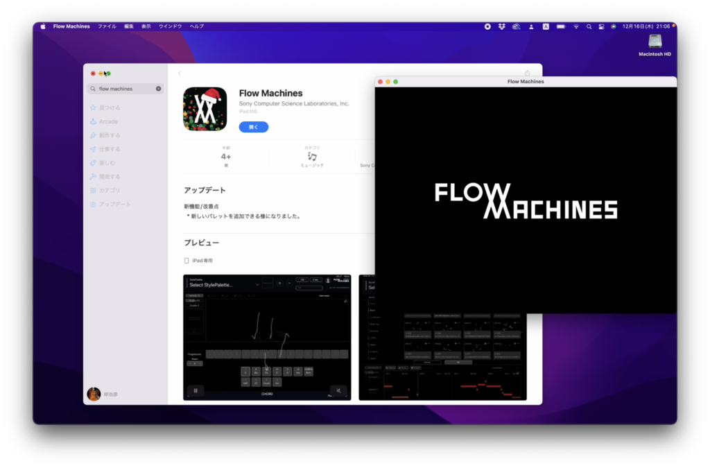 デスクトップ上に「Flow Machines」が表示されます。基本操作はiPad版と変わりません。